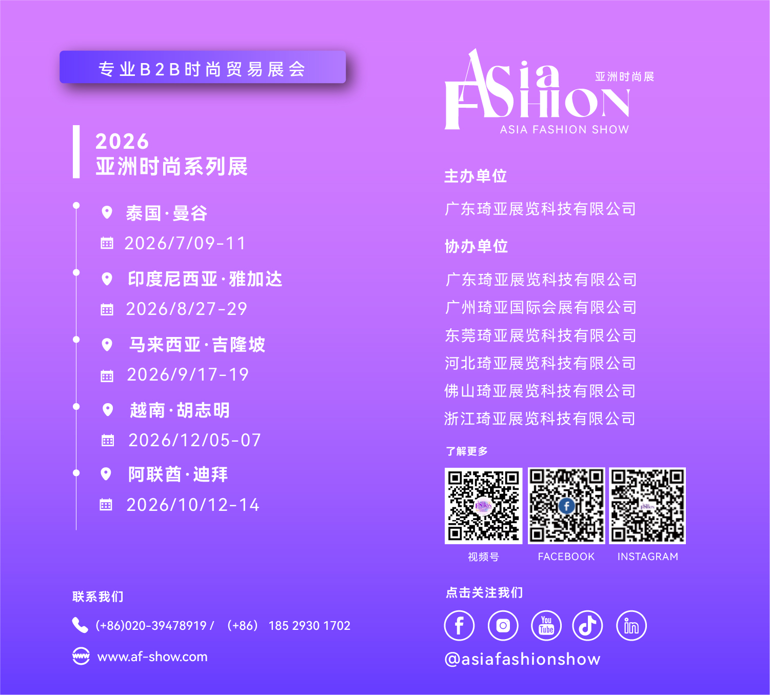 Asia Fashion Exhibition focuses on building a professional B2B fashion industry chain exhibition, focusing on the upstream and downstream industries such as bags, shoes, clothing, leather surface accessories and beauty care, and is committed to building the largest and most professional fashion B2B exhibition in Asia.